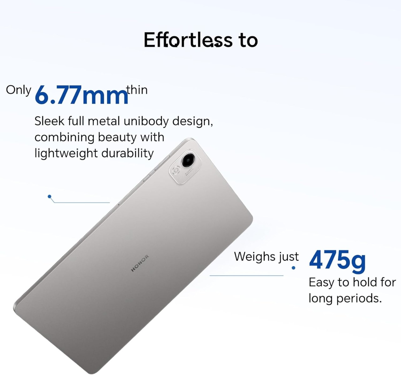 - For productivity, you'll love the multi-window mode that lets you open multiple apps at once - Long days of studying are a bit more bearable with eye-friendly low blue light filters - Its 6 GB of RAM is great for keeping stacks of tabs open or knuckling down to multi-task - You've enough space for all your apps and holiday photos with its 128 GB of storage - The 5 and 8 MP cameras on the front and back let you take sharp photos and jump on video calls - It's only 6.7 mm thin, which means you can pop it in your bag easily - With MagicOS 9.0 you get AI Handwriting, Voice-to-Text, and formula recognition—ideal for work or study