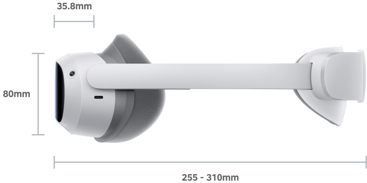 In the Box VR headset ×1 Controller ×2 1.5V AA alkaline battery ×4 Glasses spacer ×1 Nose pad ×1 Wrist strap ×2 USB-C power adapter ×1 USB-C to USB-C 2.0 cable ×1 Quick Guide ×1 User Guide ×1 Safety and Warranty Guide ×1