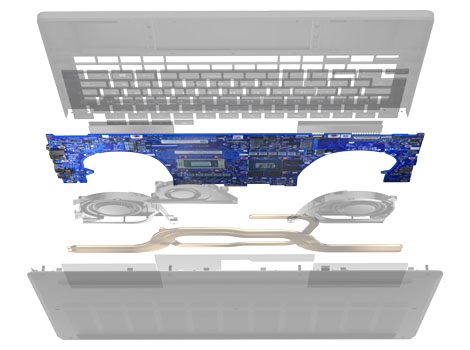 ROG Intelligent Cooling is a suite of components that work together in harmony to keep our high-performance laptops cool and quiet. The Zephyrus G14 boasts some never-before-seen additions to ROG’s list of cooling technologies, including improved heatpipes, Tri Fan Technology, 2nd Generation Arc Flow Fans™, and a redesigned high-efficiency air outlet. Taken together, these systems keep the machine operating at its peak while staying quieter than ever.