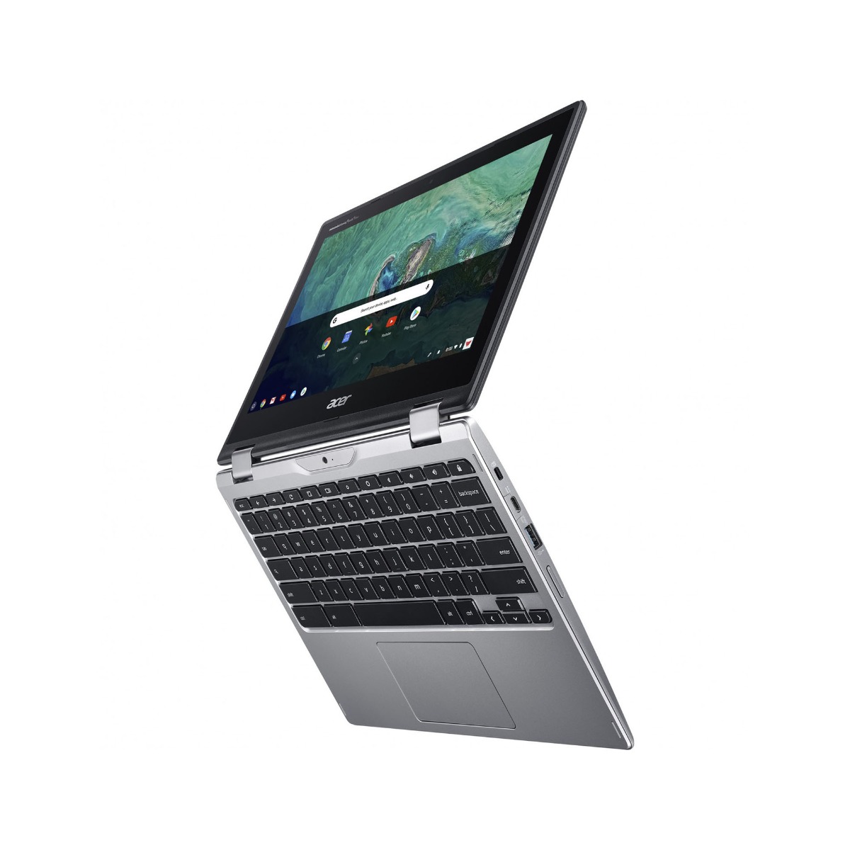Make full use of this Chromebook’s 11” display. With its 360-degree convertible modes, easily make presentations or share your screen in convenient and collaborative ways.