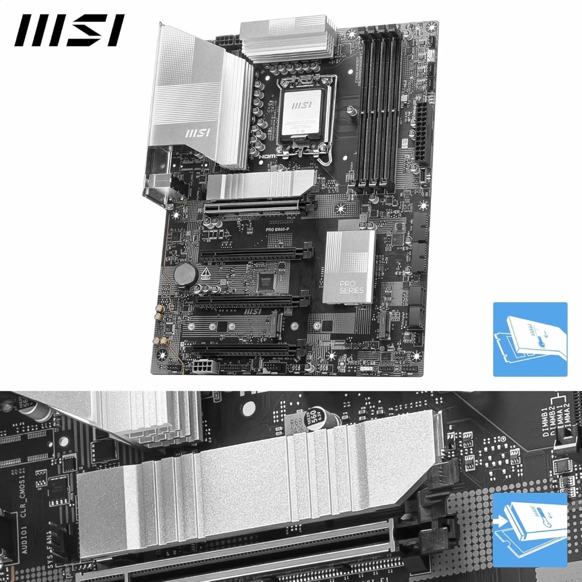 The PRO B860-P is a creation-oriented ATX motherboard with a 12 Duet Rail Power System, constructed around the latest Intel B860 chipset which supports Intel Core Ultra Processors (Series 2), featuring PCIe 5.0, 5G LAN, DDR5 and Frozr design that delivers the capacity to support a broad spectrum of both cutting-edge and innovative hardware.
