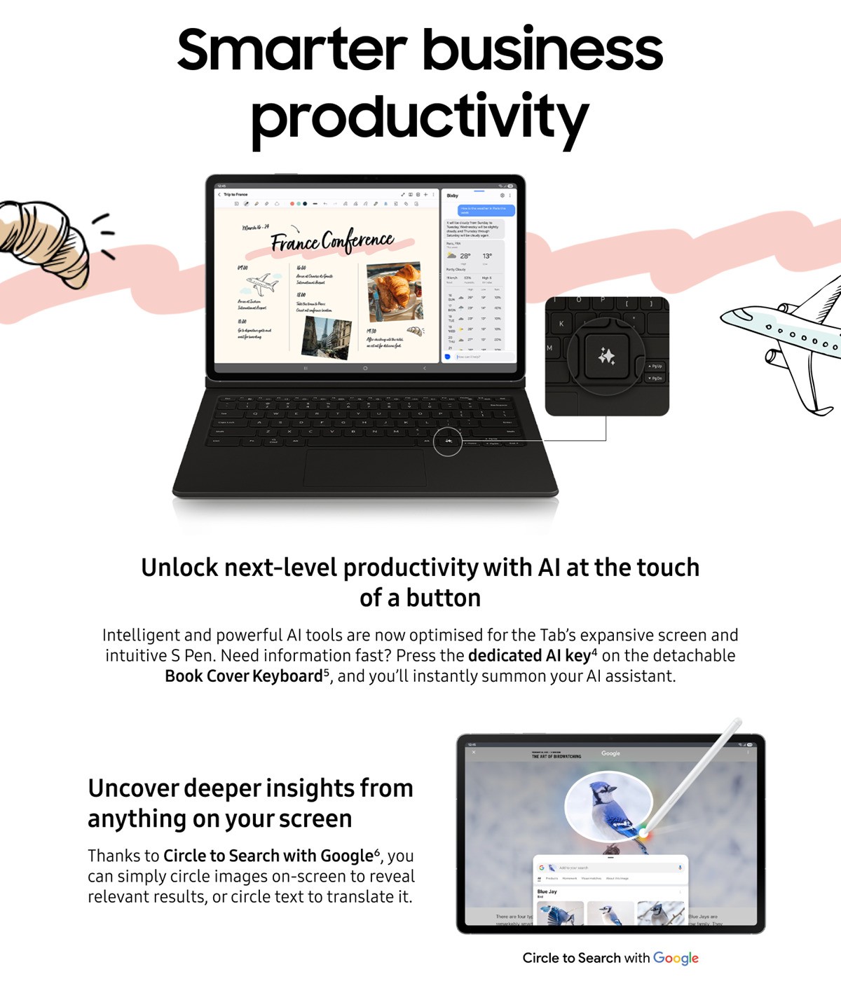It's got a brilliant 2.8K display with a 90 Hz refresh rate. That's perfect for binge-watching shows or blowing off steam with your favourite game. And if you're feeling creative, just grab the included S Pen. You can sketch your ideas, create digital masterpieces or just sign a PDF. Whatever you do, the Galaxy Tab won't hold you back. The Exynos 1580 processor's got plenty of power to make everything run smoothly.