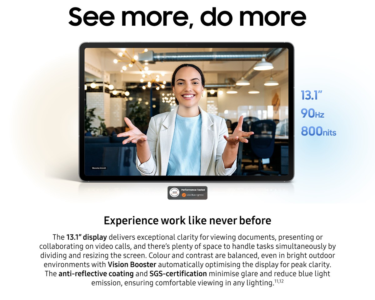 - From video calls to Insta-worthy selfies – the 12 MP rear camera and a 13 MP selfie camera will always make you look sharp - It's IP68 water-resistant, so getting caught in a rain shower doesn't have to bother you - The dual speakers with Dolby Atmos pump out full and punchy sound to match the screens visuals - You'll have plenty of space for your files and photos with 256 GB of storage - It supports WiFi 6 connection for super-fast and rock-steady internet - A fingerprint scanner keeps the tablet secure and for your eyes only