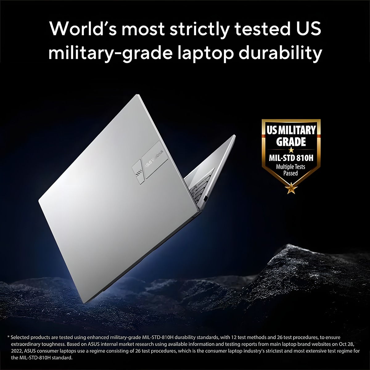 ASUS laptops* are engineered with extraordinary toughness meet the exacting US MIL-STD-810H military-grade standard, undergoing 12 rigorous test methods and 26 punishing test procedures — exceeding industry standards. The upshot is a range of products that are renowned for reliability and durability. These factors also inherently benefit longevity and thus sustainability, so you can work, travel or relax with the confidence that your ASUS laptop is ready for the real world — today, and long into the future.